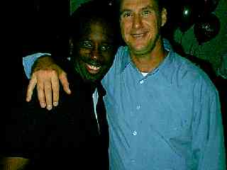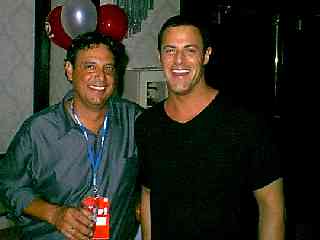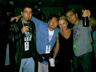 SHECKY! editor TRACI SKENE and Howard Stern jokeman JACKIE MARTLING at the Pop.com gathering.![]() Comedy Central's ZOE FRIEDMAN and 3Arts' DAVE BECKY stalked by the SHECKY! papparazzi.![]() L to R: Comics New Face-r SAM TRIPOLI and KEN JEONG, IAG's SCOTT and New Face-r JAKE IANNARINO at the pop.com disco.![]() Standup comics WALI COLLINS and JOHN CAPONERA in the shadows at the pop.com shindig. |