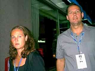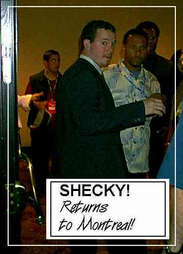 MONTREAL--There was a decision by Festival organizers to de-emphasize seminars and the like at the 2000 version of this industry summer camp. In the place of dry, boring seminars would be things like a roast and a basketball game. The First Annual Just For Laughs Basketball Tournament sponsored by Reebok took place at the gymnasium on the campus of McGill University. Not a bad idea, really: Field a team made up of talent and a team made up of industry and provide wiseguy commentary. One problem with the execution, though: They scheduled it for Saturday morning at noon and they pretty much kept it a secret. The result: more players than crowd and Industry won. Note to JFL planners: Schedule it for 2 in the afternoon and publicize it better. After getting back to our base and attempting to dash off a Festival update it was 5:30 in the morning. The prospect of playing basketball just six short hours later was not appealing (especially after a wrong number ripped a hole in our REM sleep at 9:30)! The CBC weather guy predicted that the tandem low pressure areas that parked themselves over much of Quebec and Ontario would mean copious amounts of rain starting Friday and continuing into Saturday night. How about that? Canadian meteorologists are wrong just as often as U.S. meteorologists! Good news for the folks who showed up for the Comedy Network barbecue. It was held on the Delta's outside terrace, just like last year. But, unlike last year, no one named after a farm animal fell into the fountain. SHECKY! editors were too stinking tired to make it to the barbecue. A full week of gathering information, packaging it, dispensing it, partying, networking, partying and performing left us mere husks, unable to do anything but sleep for most of Saturday. Fatigue and dehydration are two very important factors here at this vast festival. The amount of activity, the schedule and general logistics make it very difficult to get in quality sleep. SHECKY! editors were well aware of this after last year's fest, but performing at a few charity shows while here in Montreal this week made us that much more tired. We sympathize with the performers who are actually in the Festival. Some of them are called upon to perform three and sometimes four times in one night! One comic we spoke to on a Friday shuttle ride to the Theatre St. Denis told us that not only was he scheduled for three shows that night but he was also summoned at nine that morning for a (rather pointless) "walk through" of that night's event. Comics Joey Elias and David Pryde, for example, had this schedule last night: The 7, 9:30 and midnight Montreal Show at the Club Soda venue, then they were also on the bill for the 11:15 Comedy Night In Canada show at the Comedy Nest. This may be similar to a typical weekend night for a Manhattan comic, but the added intensity and pressure of the Festival experience makes all this scurrying around a lot more tiring. Heap on some publicity work and radio interviews and, of course, the all-hours partying (which is, admittedly, optional) and it all adds up to bone-tired comics. Hey, Festival organizers: Swing a deal with some bottled water people! How about water coolers at every corner? Saturday night is definitely NOT the loneliest night of the week! A significant chunk of the festival rolls, slides, floats or glides away on Sunday morning. So many take advantage of the opportunity afforded by the major bashes thrown on this evening. The CBC attempted to throw a major bash at the tent complex just outside the Theatre St. Denis. We say "attempted" because they made the grievous error of actually requiring attendees to produce an invitation. Normally, the "invitations," whether they are printed on a card or photocopied (or, in the case of Comedy Central, wrapped around a pillow!), are merely announcements and are NEVER a prerequisite for admission. One source we spoke to (who actually was able to produce the paper) said she looked around the tent at one point and realized she didn't know anybody in attendance. In other words, the usual band of industry merrymakers that was populating most of the week's festivities had been shut out. And, to top it all off, they called this particular party "A Salute to Canadian Comics," but it coincided with The Montreal Show and Comedy Night In Canada Show, effectively preventing nearly two dozen of the salutees from attending! Some salute! More like a raised middle finger (Do they do that here in Canada? Of course--it's universal!) Fortunately there was several thousand square feet of party rolled out at the Delta! This year it was pop.com who inflated the balloons and spun the throbbing music. That makes two major soirees/bashes/shindigs (We're running out of synonyms!) that were thrown by dot.coms. The dot.com thing has become quite a force here. There's always speculation at JFL about deals being signed for x amount of dollars. This year, however, the only sentences that had those three words in them also contained the words "dot" and "com" somewhere in them. Pop.com went so far as to hand out a plaque to a comic, David J. Nash, and unofficially (Non-JFL-approved!) saddled him with the rather ungainly title of "Most Outstanding New Face." They briefly stopped the music and brought out (much to everyone's horror) an Austin Powers impersonator to present the award. Then they turned the music back up, turned on the strobes and it was back to ignoring the cauliflower! The food was atrocious at all but one party (comedyworld.com/Thursday night You can't go wrong with smoked meat!). Does anyone really eat cauliflower? Sushi is risky. When you refuse to eat free food, you know something is horribly askew! We promised that we'd address the subject of hype in today's upload, but, we're afraid you'll have to wait until tomorrow. |